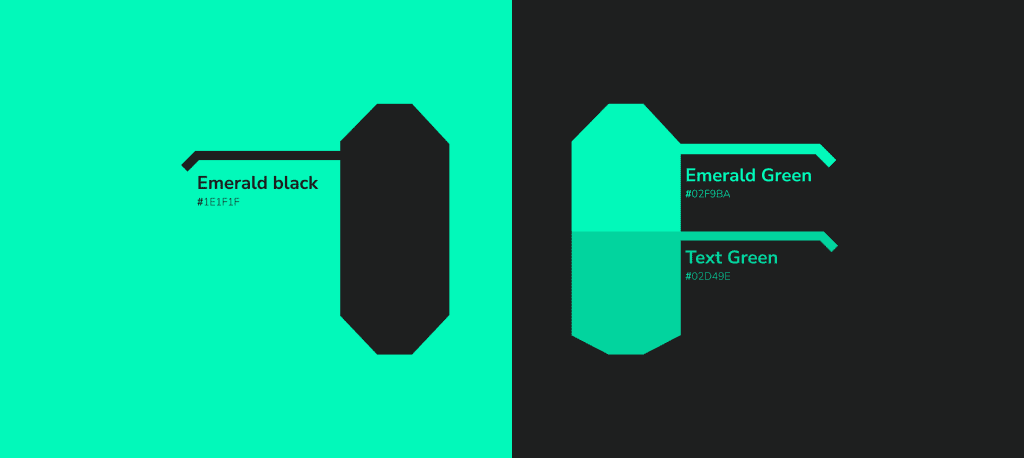 Inspired by the facets of an emerald and the structured geometry of mosaics, the brand reflects sophistication rather than literal gemstone imagery. The brackets reinforces Emerald’s role as a structured and analytical financial entity.