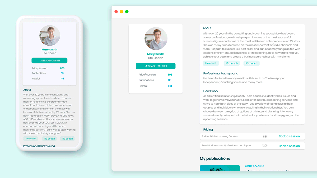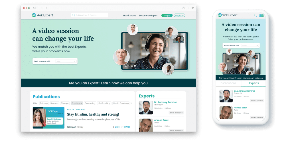 The challenge was to create a cohesive and credible visual language that could cover a wide range of expertise – from life coaches and math tutors to psychologists, lawyers, and academics. The brand needed to feel accessible and popular (not elitist), while still professional and business-driven. The result was a mix between a library-like sense of knowledge and a commercial, Netflix-inspired appeal.